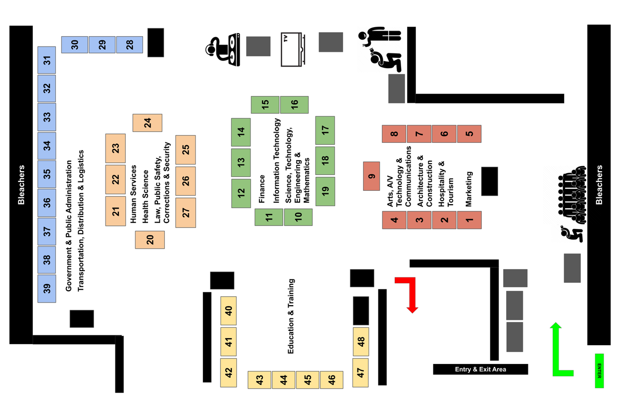 Booths are organized by Career Cluster. Students will visit booths and learn about different programs, companies, and opportunities.